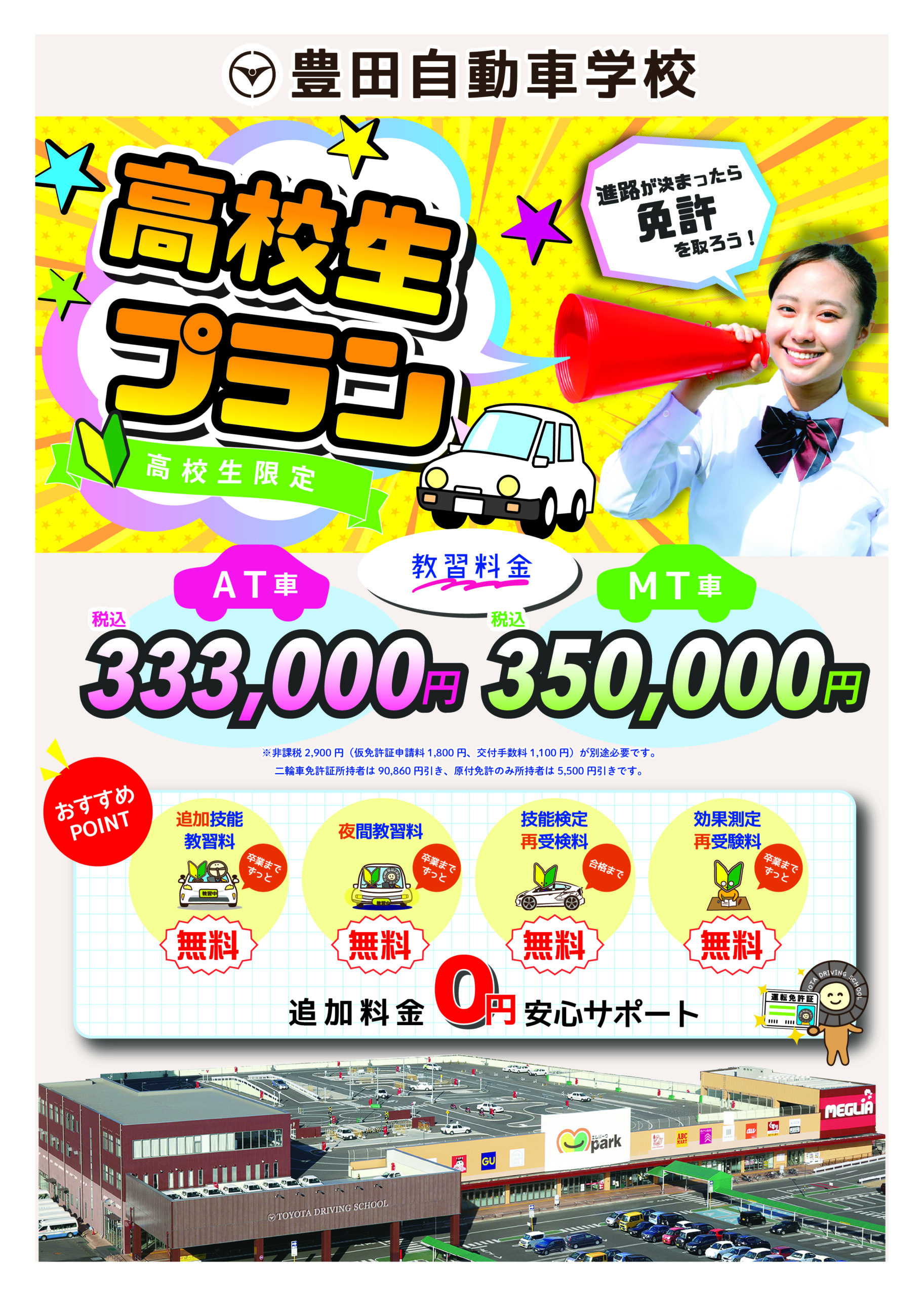 ※自動車学校への入校に対して、高校によっては所属高校の許可(許可証の発行など)が必要な場合がございます。
